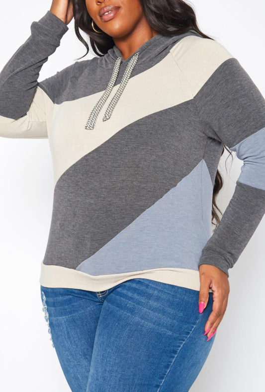 Hi Curvy Plus Size Color Block Hooded Sweater