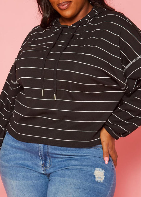 Hi Curvy Plus Size Women Striped Hooded Sweater