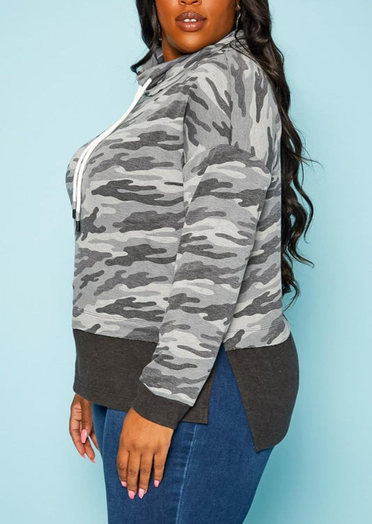 Hi Curvy Plus Size Camo Pattern Funnel Neck Sweater