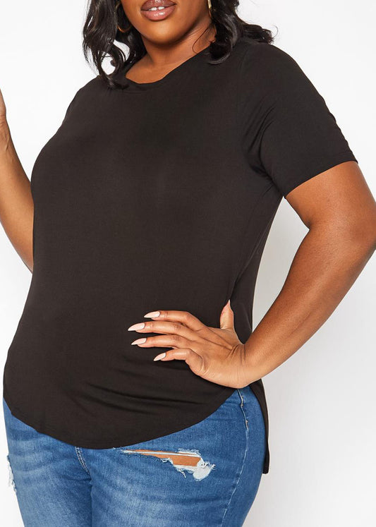 Hi Curvy Plus Size Women Distressed Crew Neck T-Shirt