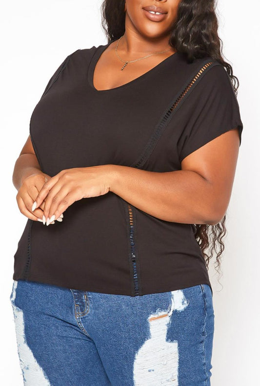 HI CURVY Plus Size WOMEN Crochet Hem V Neck Shirt