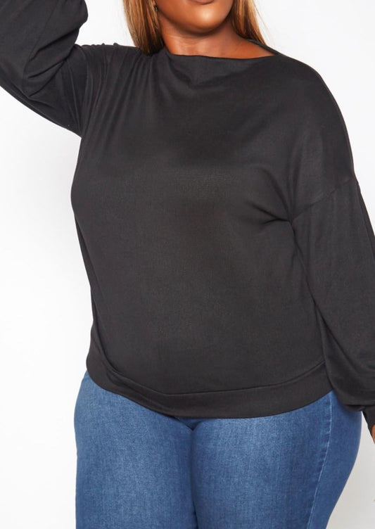 Hi Curvy Plus Size Basic Knit Long Sleeve Shirt