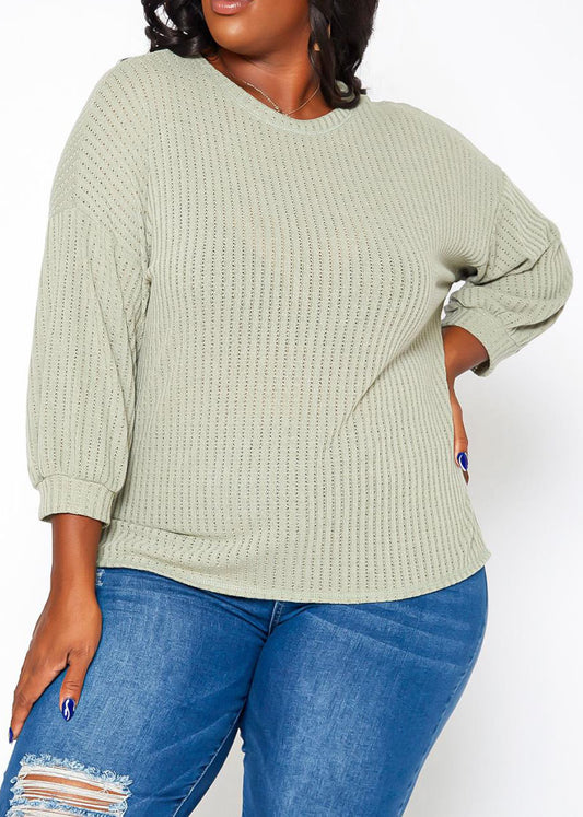 HI Curvy Plus Size Women Waffle Knit Sweater