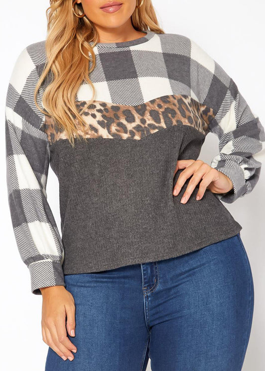 Hi Curvy Plus Size Women Plaid Print Long Sleeves Sweater