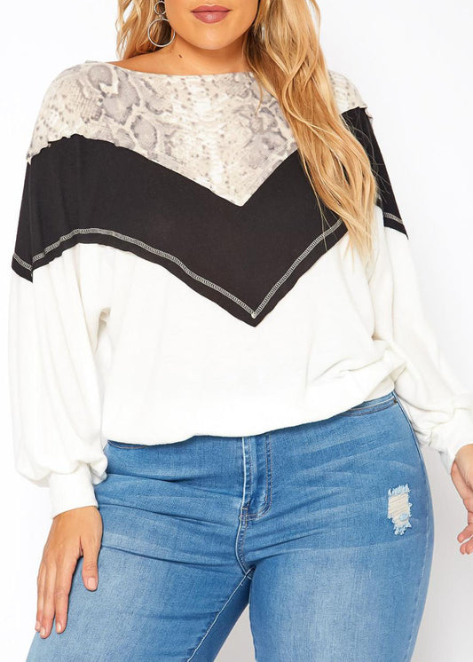HI Curvy Plus Size Women Snakeskin Splice Knit Sweater