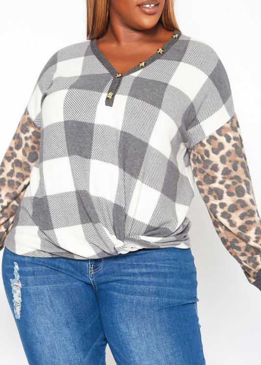 Hi Curvy Plus Size Women Pattern Splice V Neck Shirt