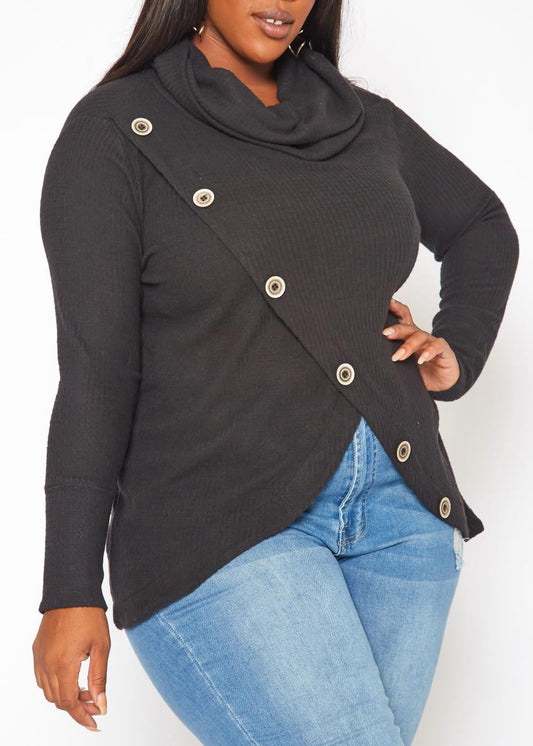 HI Curvy Plus Size Women Waffle Knit Funnel Neck Sweater