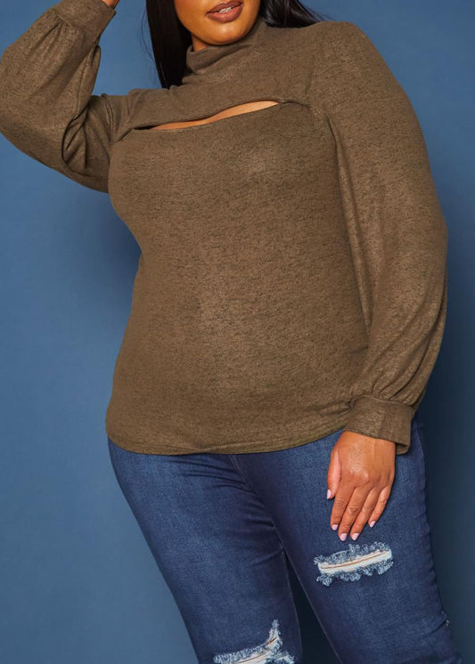 Hi Curvy Plus Size Women Keyhole Front Mock Neck Knit Top