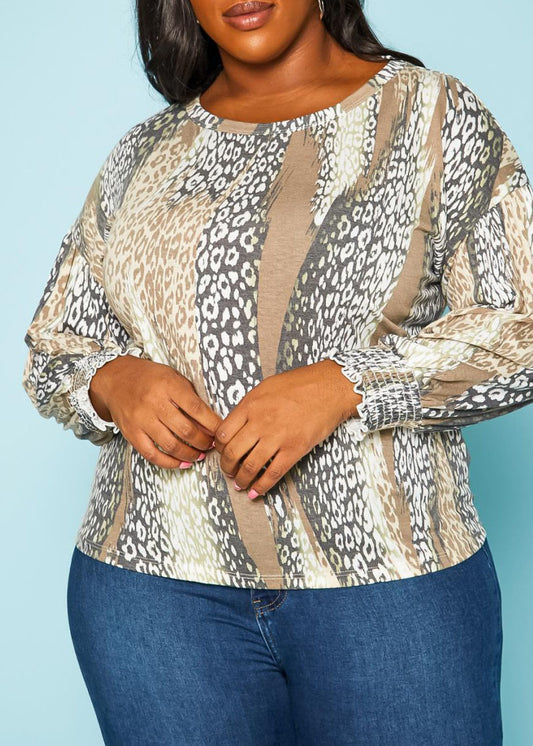 Hi Curvy Plus Size Women Leopard Print Long Sleeve Blouse